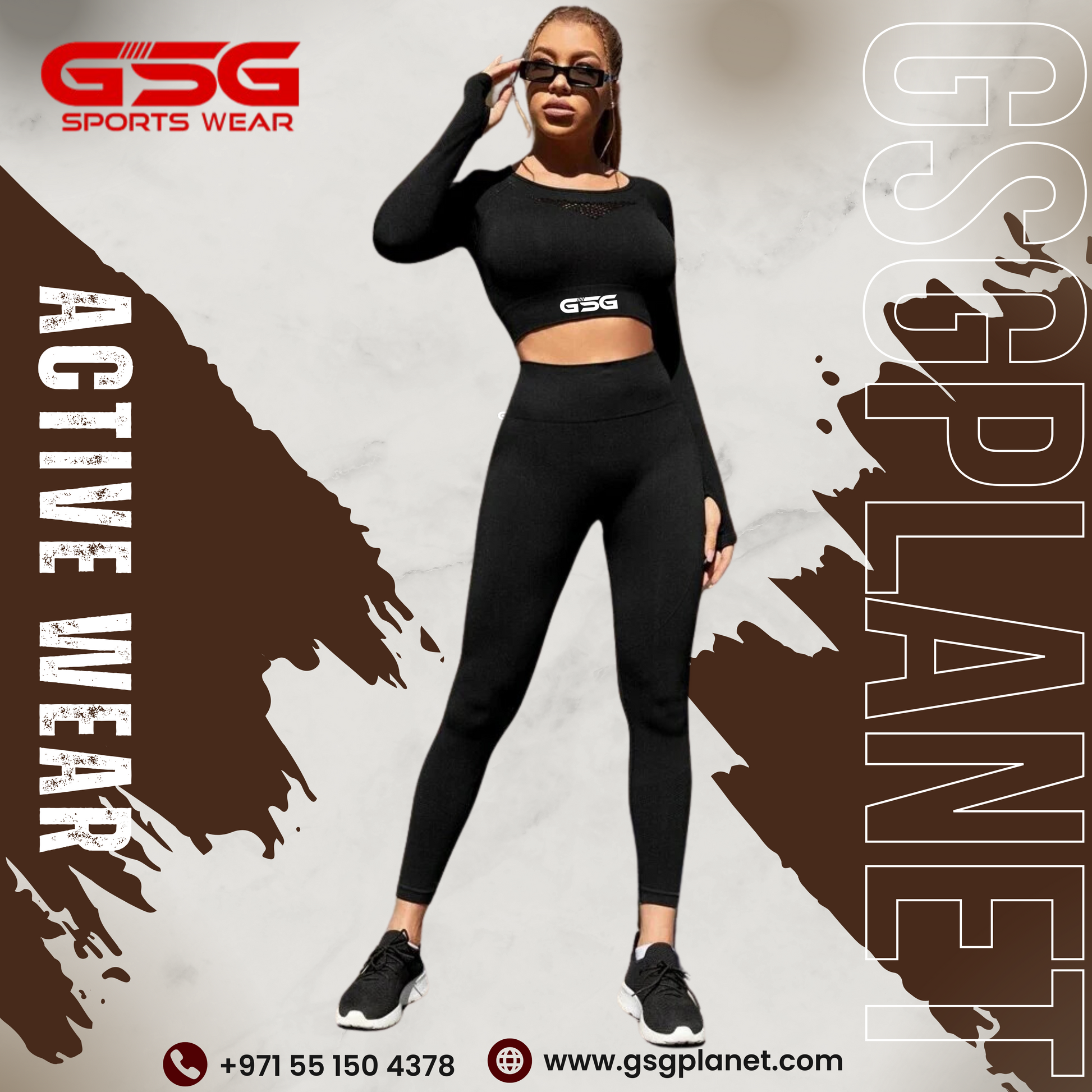 GSG 2pcs Solid Black Workout Sets