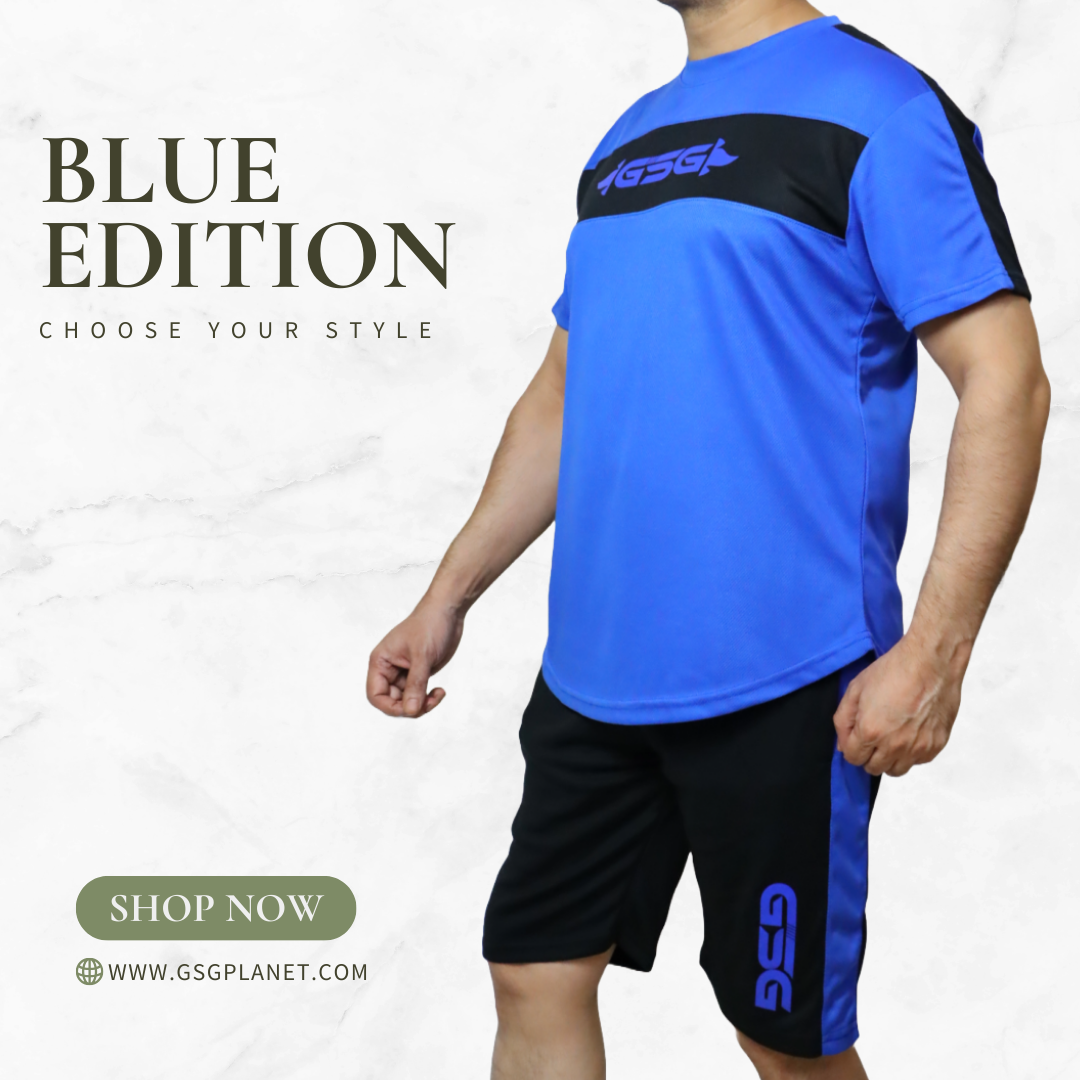 Elevate your workouts with the GSG Blue Performance Active Set, specially designed for style and functionality. Featuring a bold yellow and black design, this set includes a lightweight, breathable T-shirt and durable shorts, perfect for intense gym sessions or casual outdoor activities.