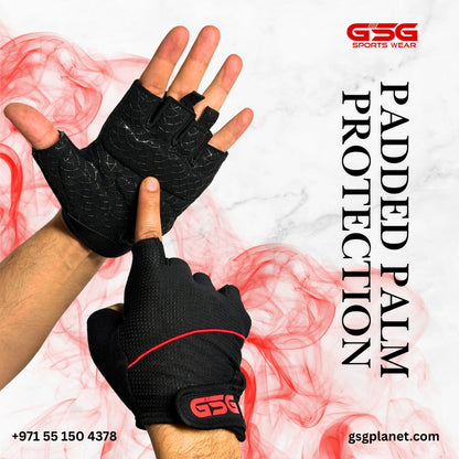 Train harder with the GSG GripPro Gym Gloves – designed for unbeatable grip and total comfort. These high-performance gym gloves feature a non-slip silicone palm, padded support, and breathable mesh fabric for a sweat-free experience. Whether you're into weightlifting, CrossFit, cycling, or general fitness, these gloves protect your hands and enhance your grip during intense workouts. The adjustable wrist strap ensures a snug fit, while the stylish red-accented GSG branding adds a bold touch to your gym gear.