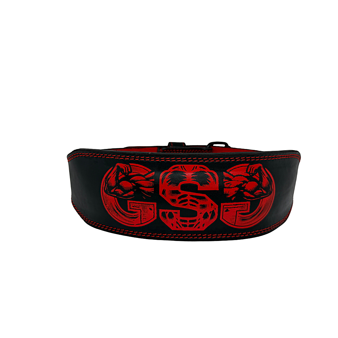 GSG Pro Gym Leather Belt - Double Prong - Black & Red Edition