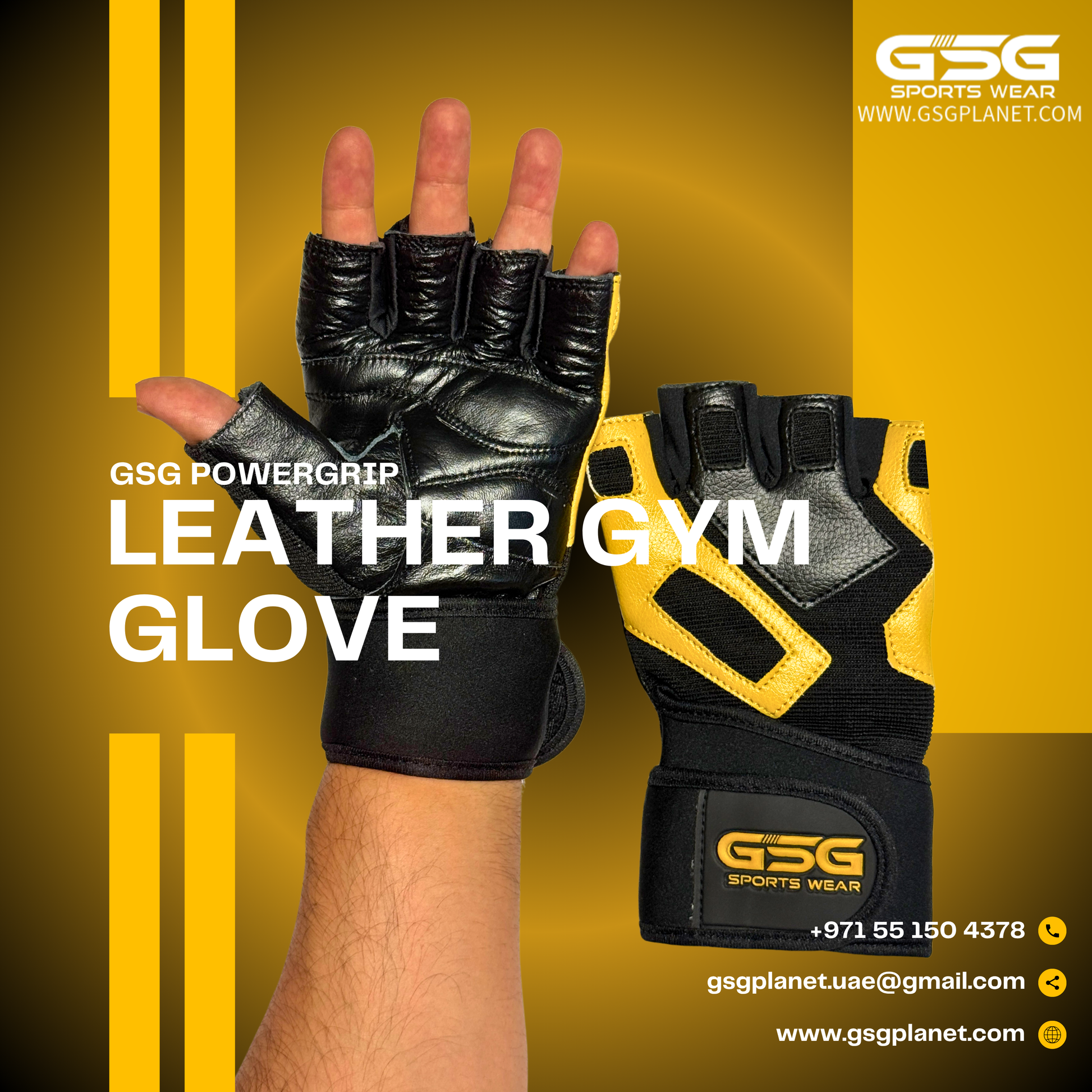 Maximize your grip and protect your hands with the GSG PowerGrip Leather Gym Gloves – built for serious lifters.