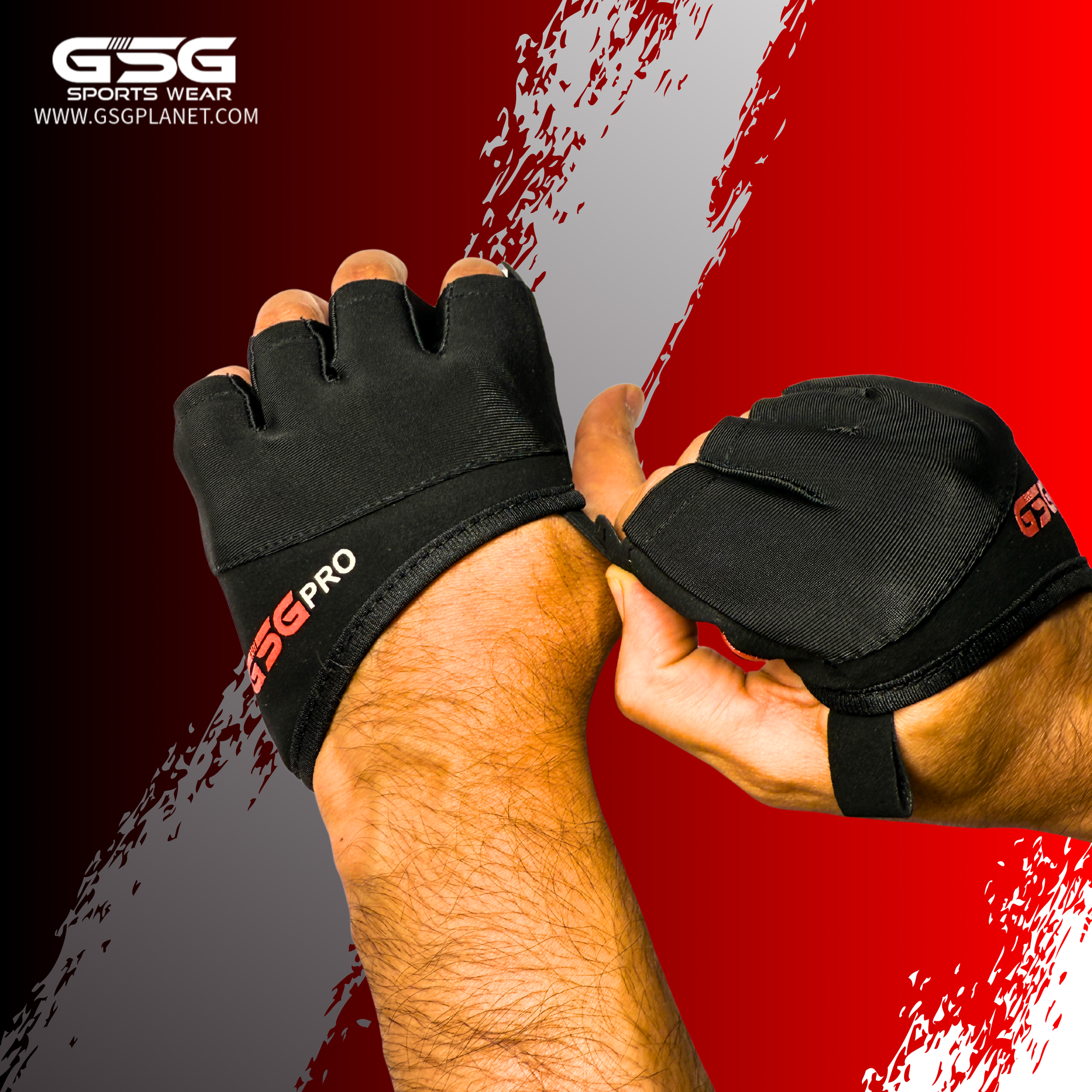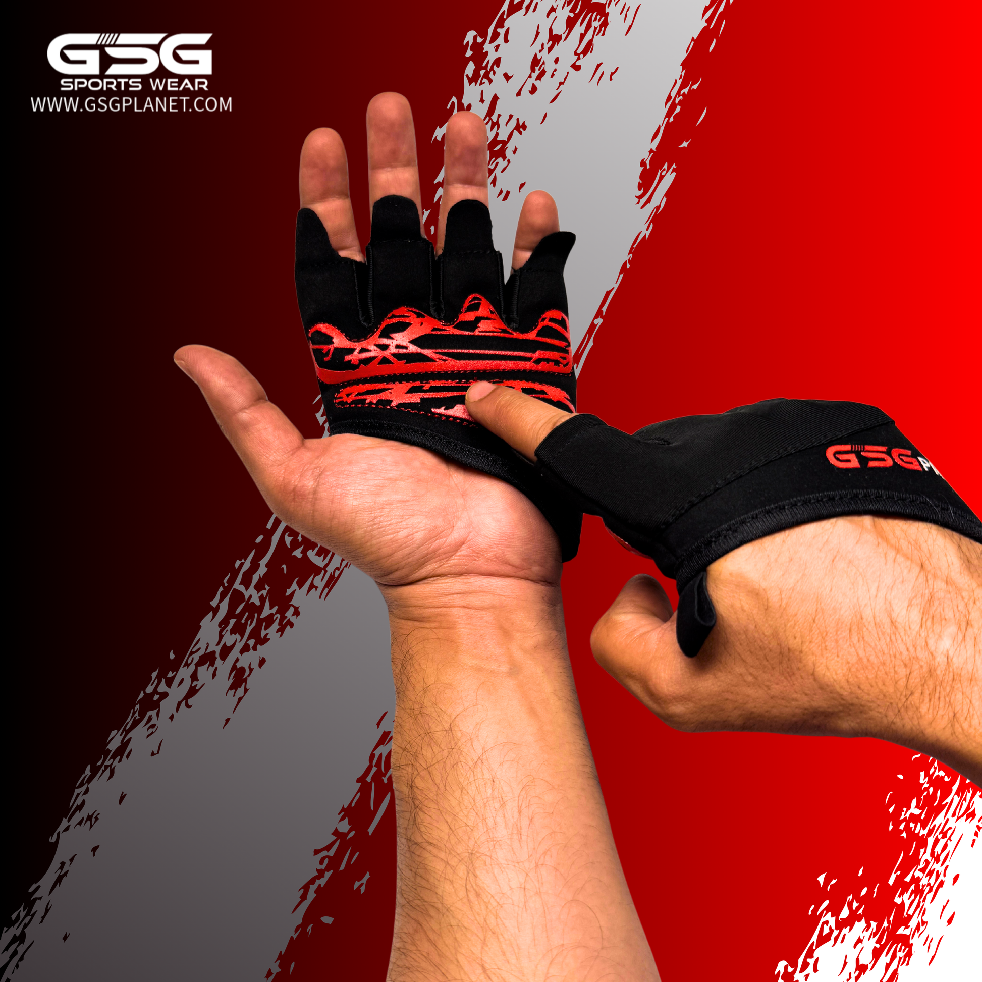 GSG PRO Grip Lifting Pads – Red Gym Gloves with Fingerless Design & Superior Palm Grip