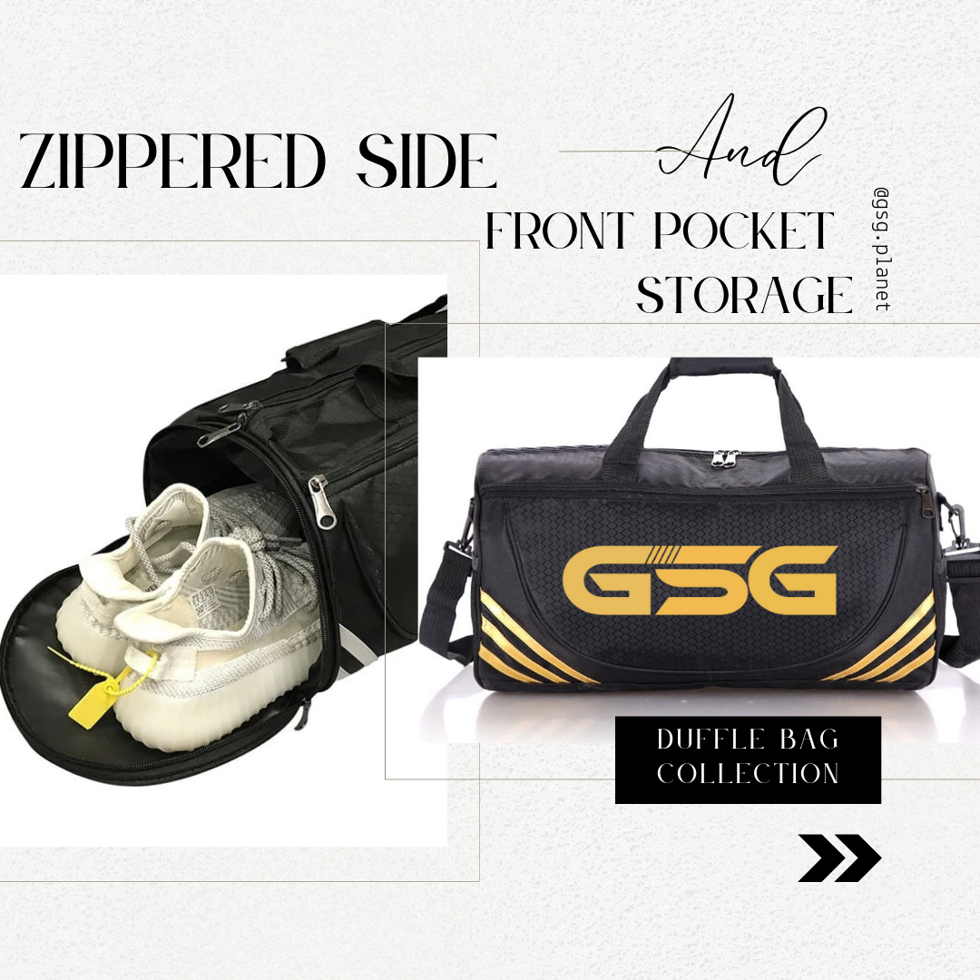 This durable, lightweight bag is designed with a sleek black finish and bold GSG branding in contrasting yellow. The adjustable shoulder strap ensures comfortable carrying for both gym-goers and travelers. Built for functionality, this versatile bag is perfect for daily workouts, weekend getaways, and beyond.