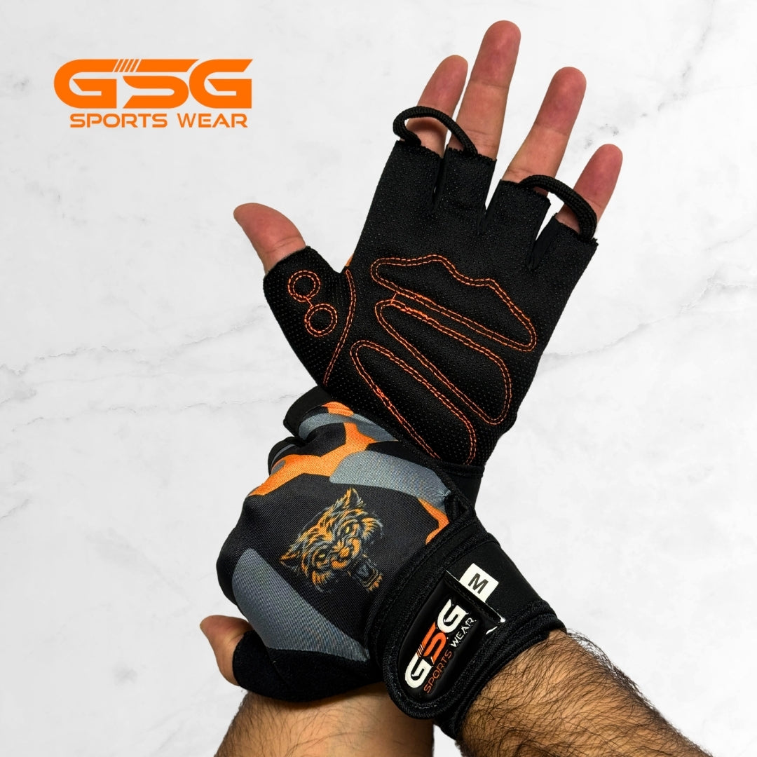 Unleash the beast with GSG WildGrip Tiger Gym Gloves – the ultimate fusion of power and precision. Designed for serious lifters and fitness warriors, these gloves feature a striking tiger graphic, durable wrist straps, anti-slip palm padding, and breathable fabric to keep your hands cool and supported during every set. Built for strength training, CrossFit, cycling, and bodybuilding.