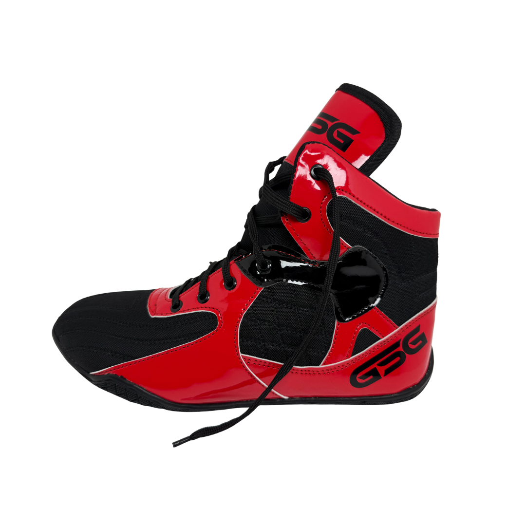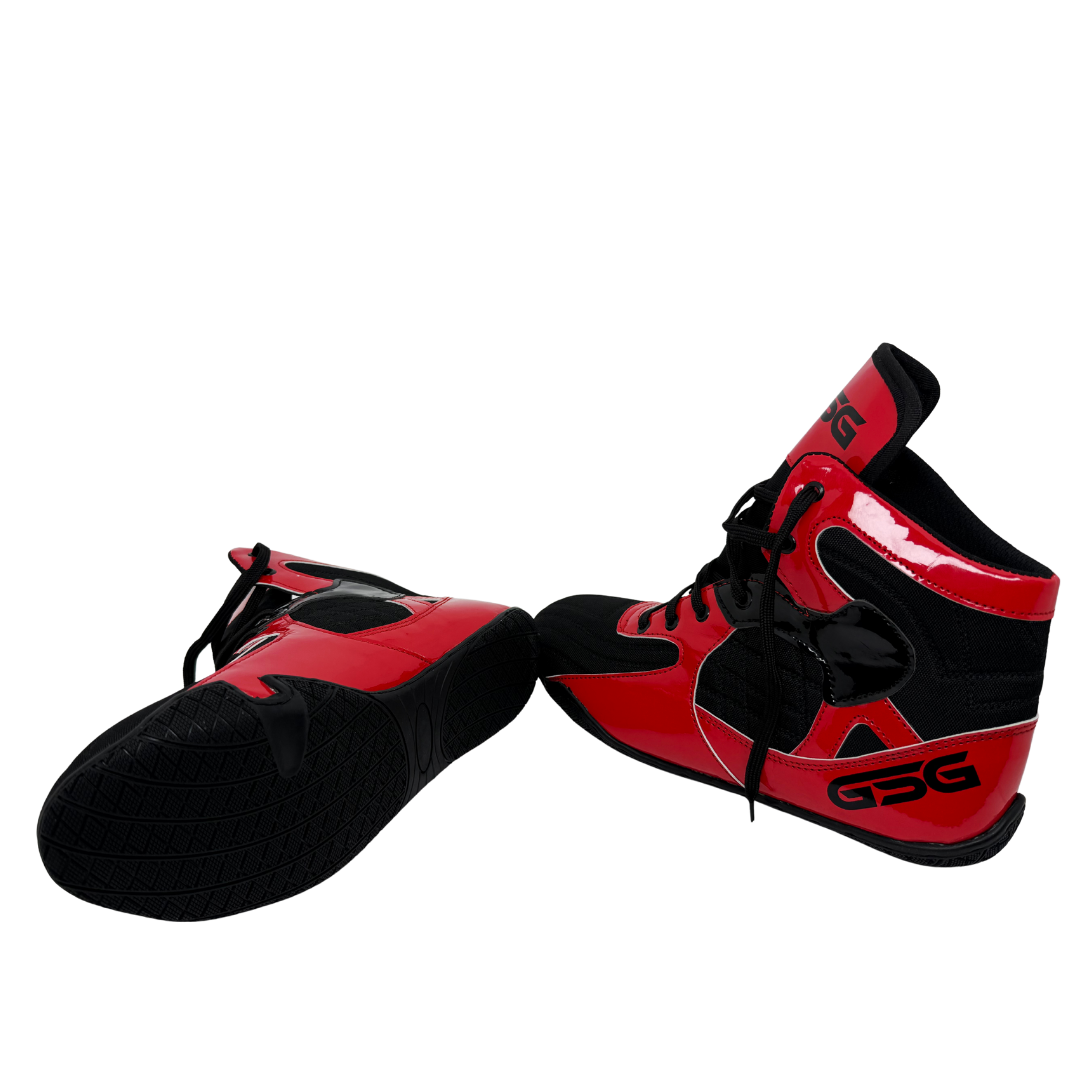 Made from high quality red PU leather these shoes offer durability flexibility and lightweight comfort for long training sessions. The high ankle support design improves balance and helps reduce strain during intense gym workouts wrestling practice and boxing drills.
